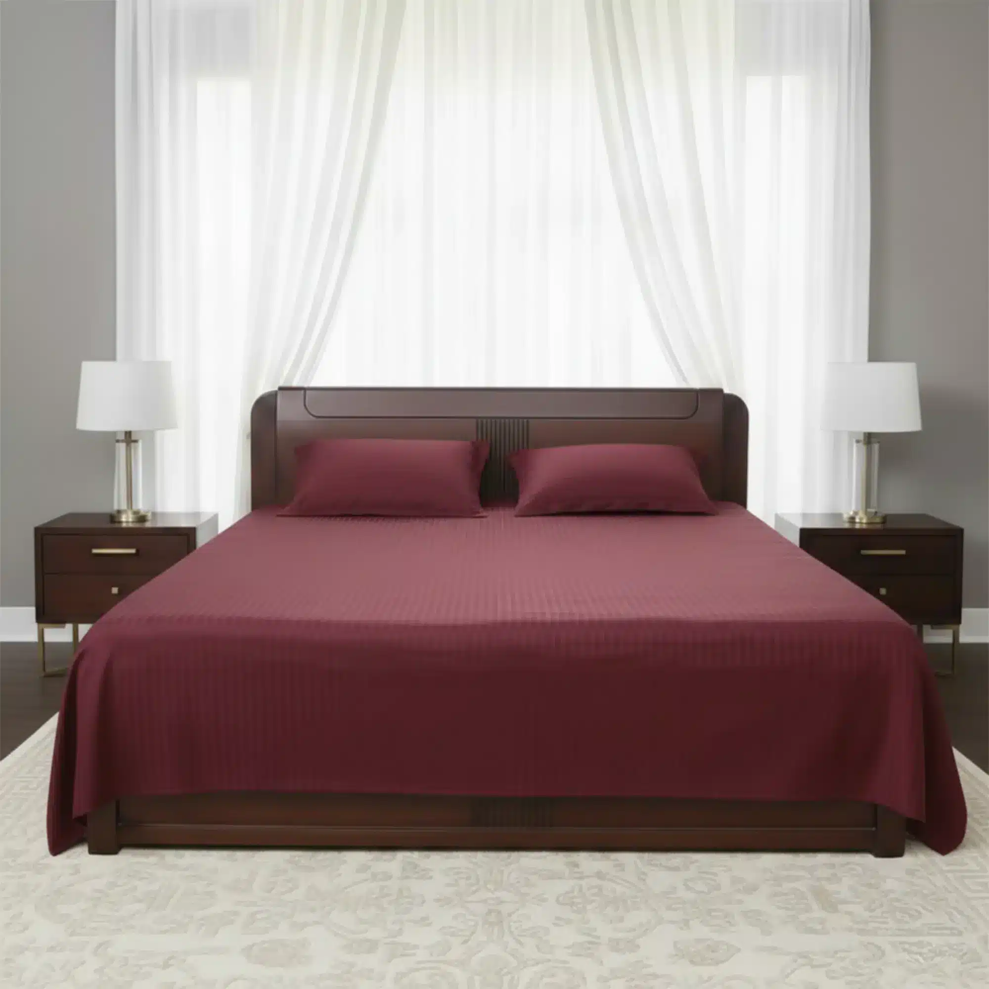 Maroon Bedsheet with 2 Head Pillow Cover.