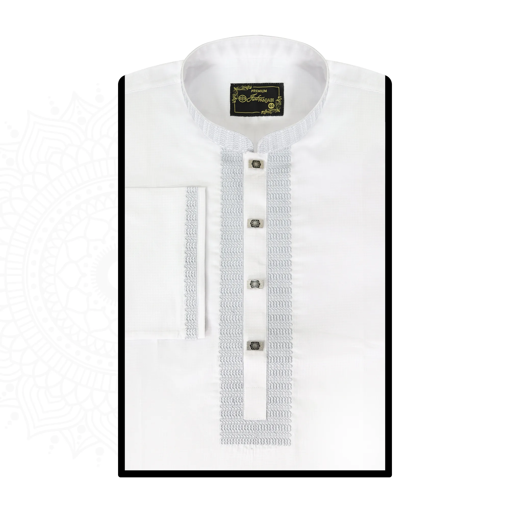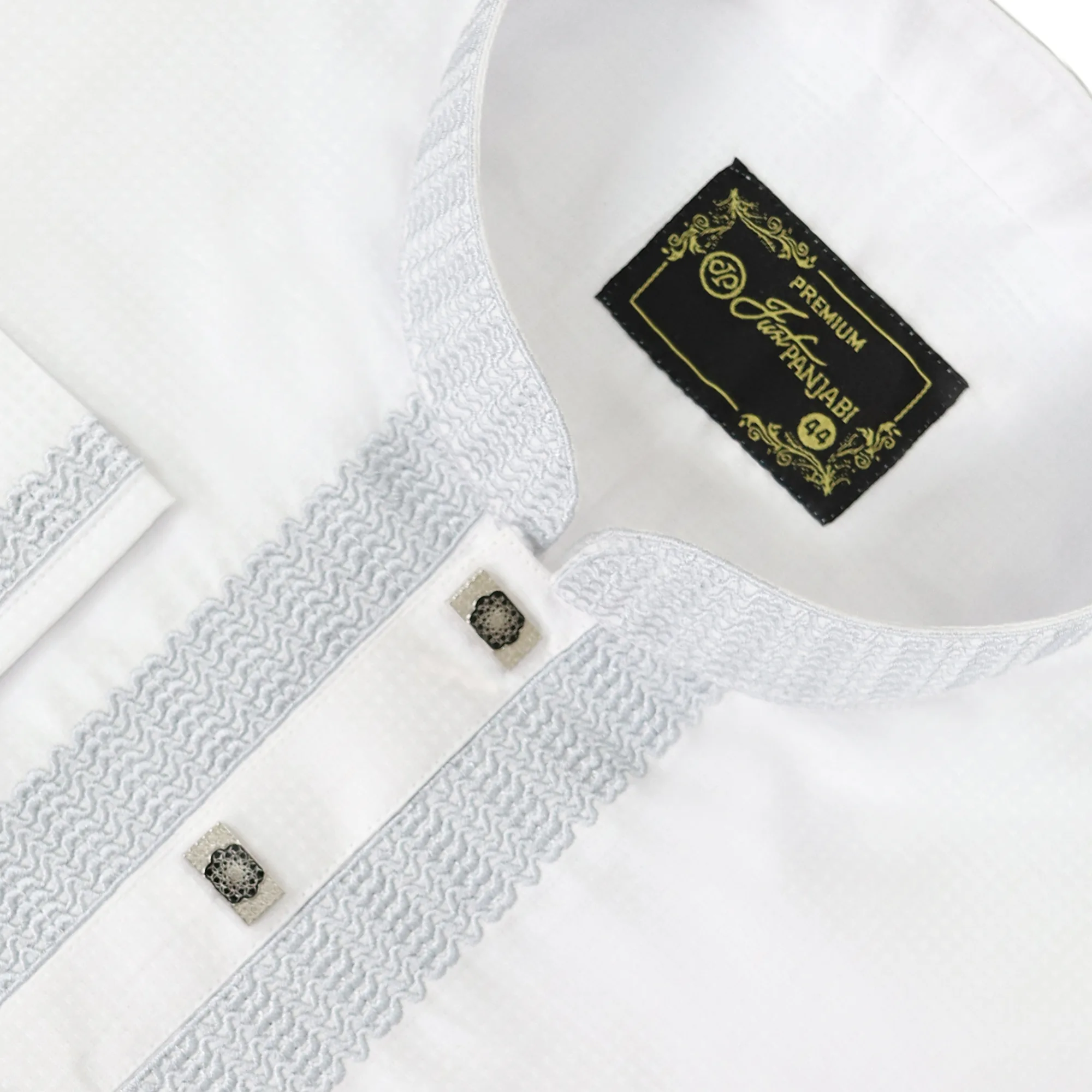 Panjabi China Cotton White and Ash Collar