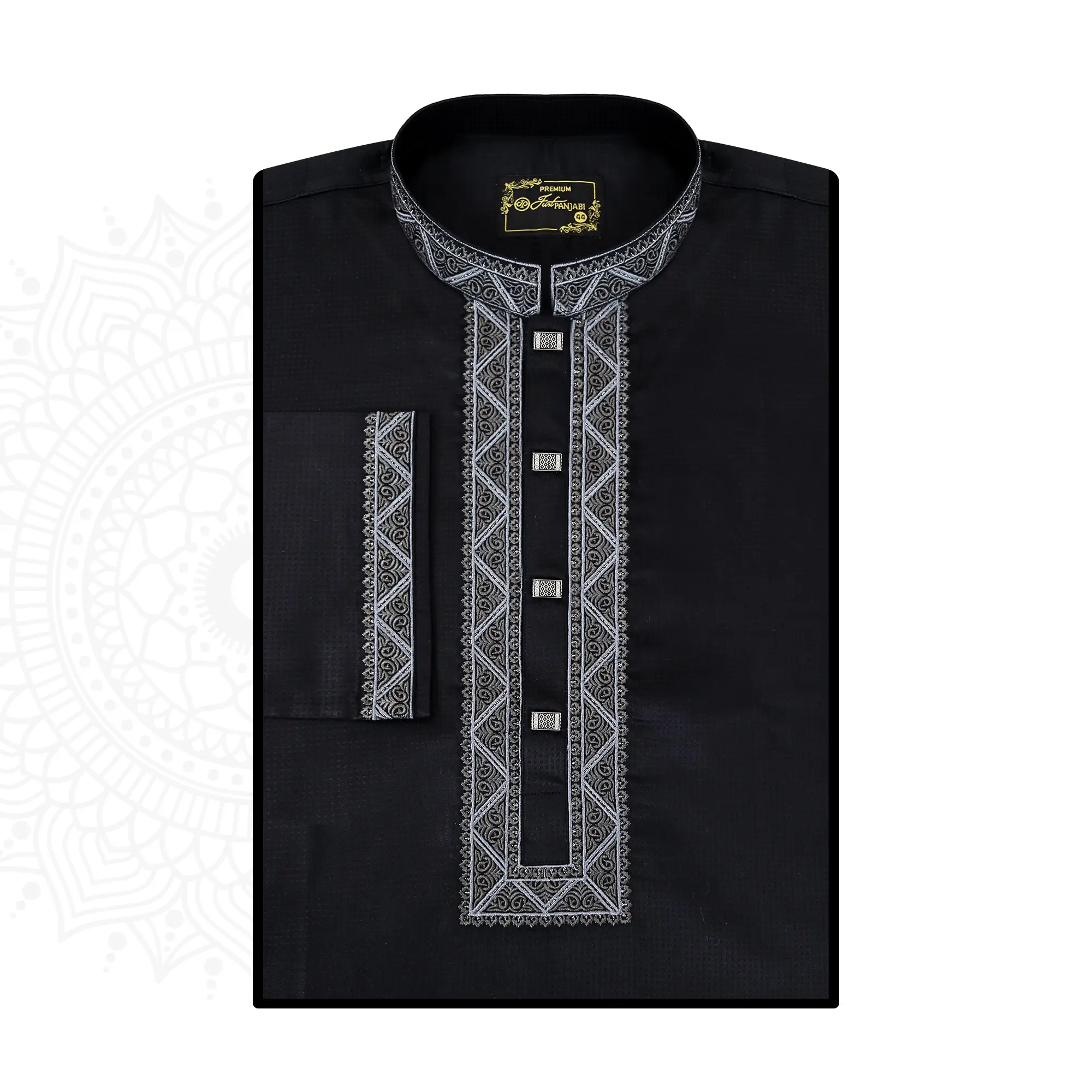 Panjabi China Cotton Black Collar